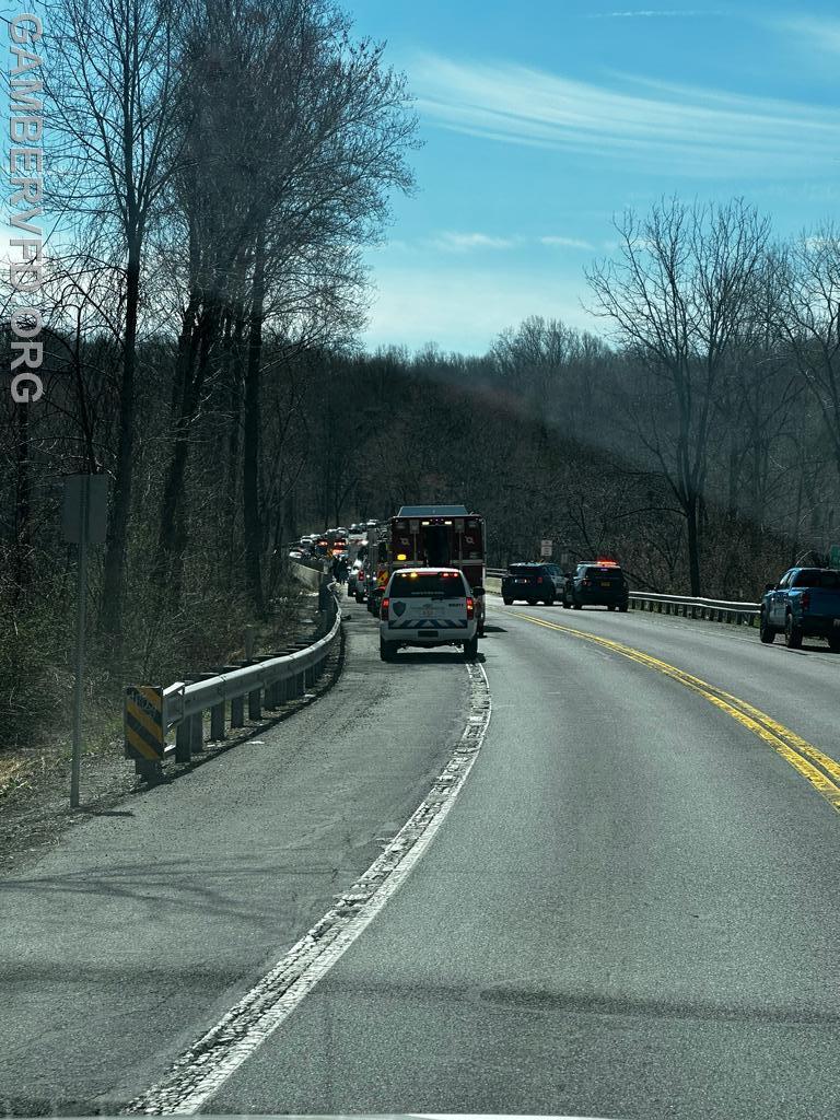 A mid-day water rescue challenged firefighters, EMS providers, and law enforcement on Sunday, March 29, 2026. Gamber station and neighboring companies were alerted at 11:41 am for a person in the water under the Route 32 bridge in the Liberty Reservoir. Witnesses reported that a person went over the side of the bridge from the roadway.