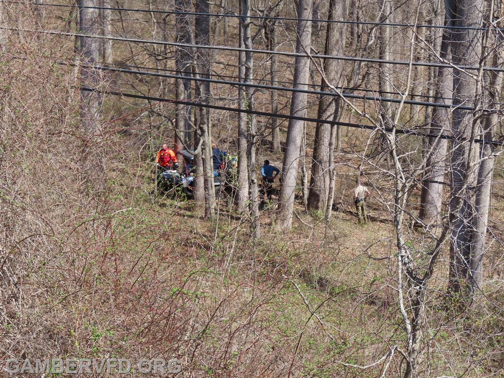 Rescue swimmers from Reese and Sykesville swam out to the victim and brought the person back to the shore. They were met with EMS personnel and ATV12 provided transport back up to the bridge and to the medic unit.