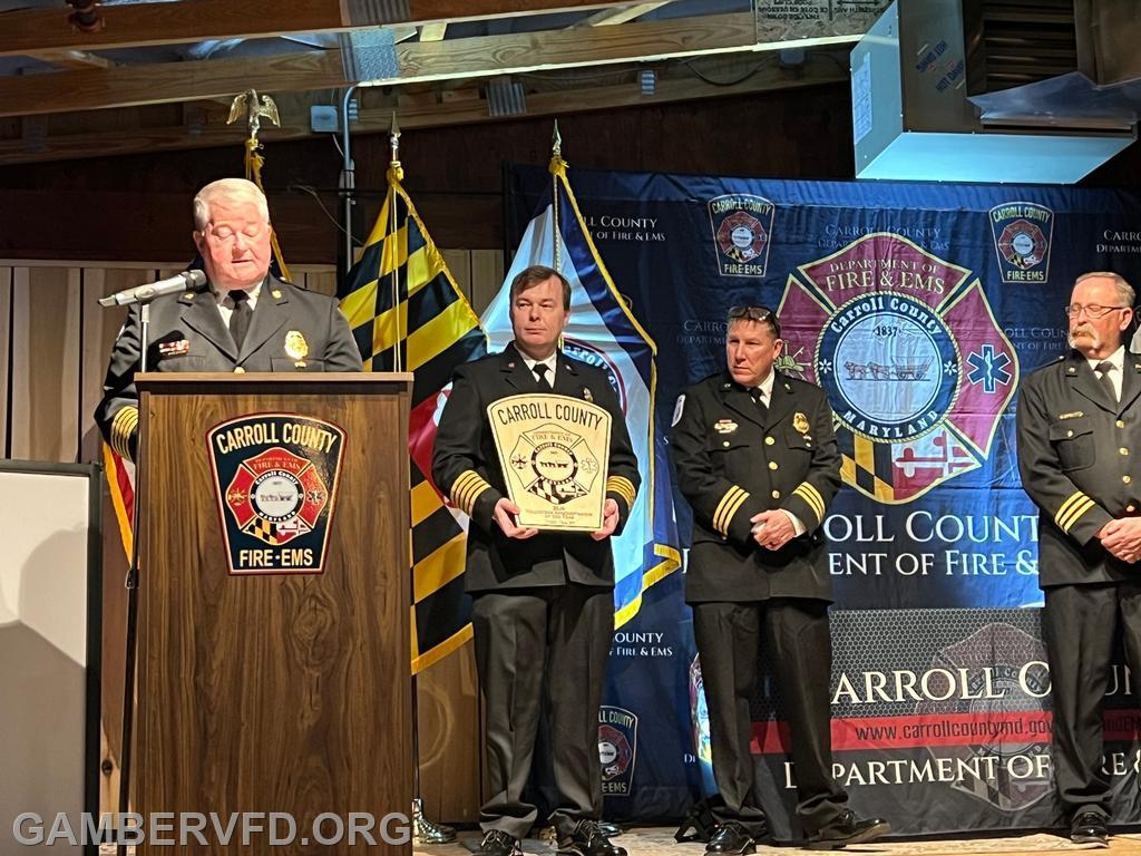 Gamber president, Todd Tracey, was recognized as the Volunteer Administrator of the Year by Chief Michael Robinson.