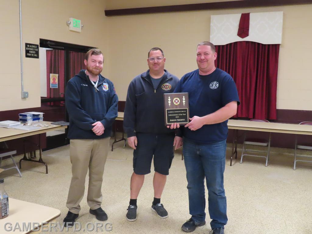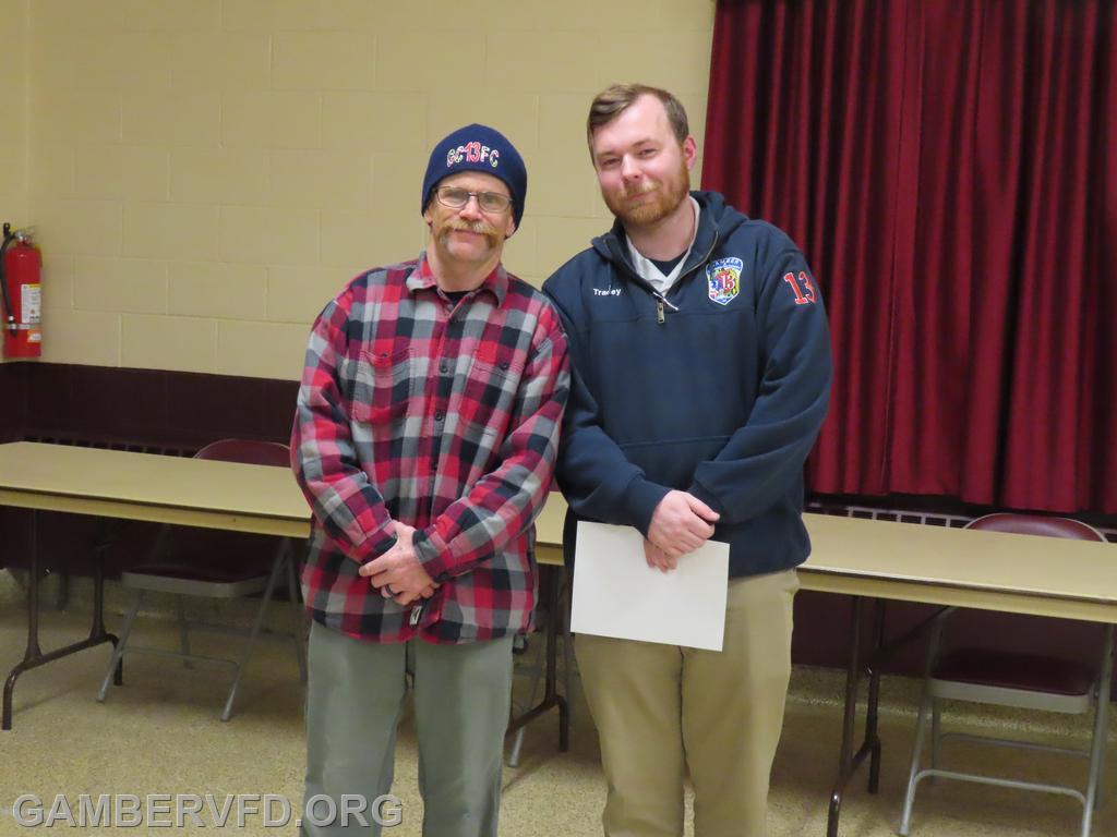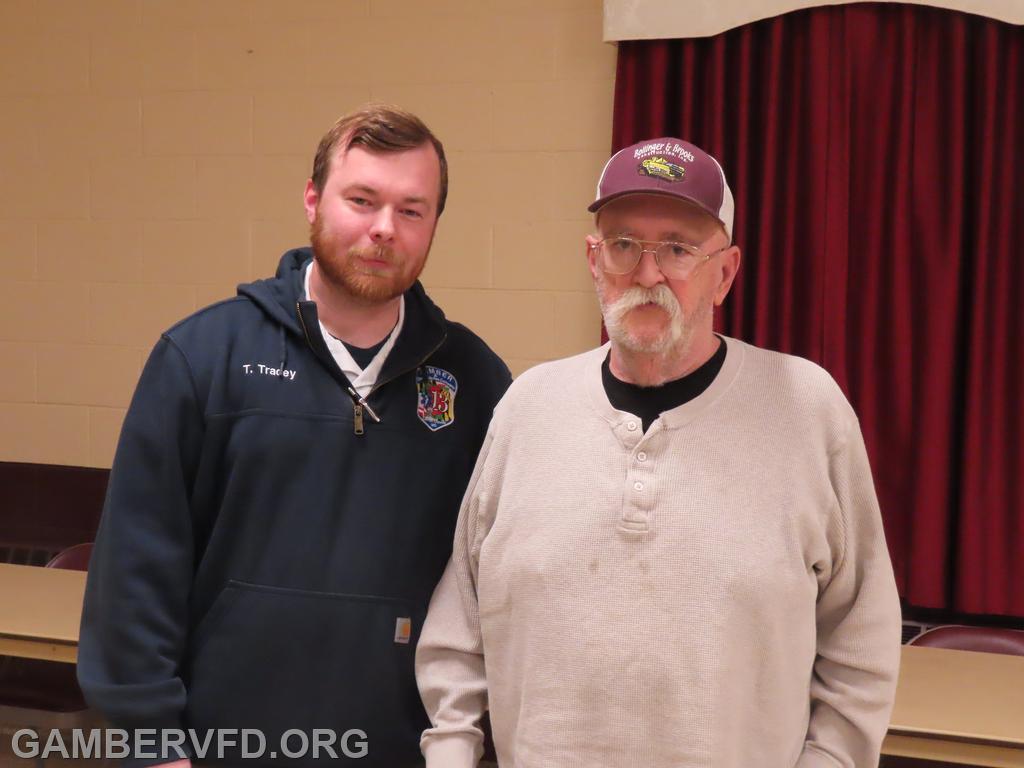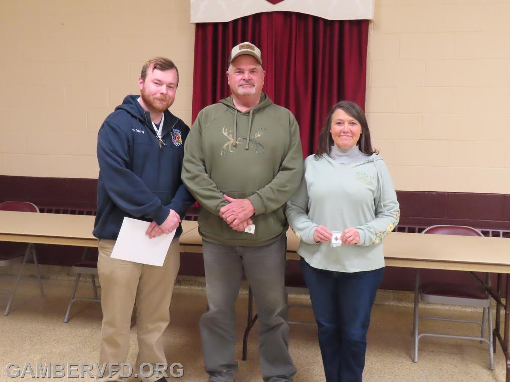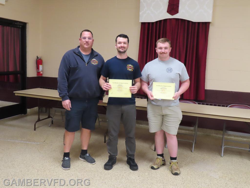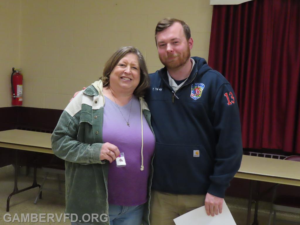 The Gerald L. Lindsay Memorial Firefighter of the Year Award was presented to Wyatt Frederick. Annie Reardon was presented with the Herman Hoff Memorial Award for Outstanding Service in Fundraising. Jeremy Sherfey was honored as the Administrative Member of the Year. The Garrett Lindsay Junior Firefighter of the Year Award was presented to Abbie Sherfey. This year's Community Service Award was presented to Christina Christiansen and her therapy dog, Diesel. The Rookie of the Year Award was presented to Blake Gable.